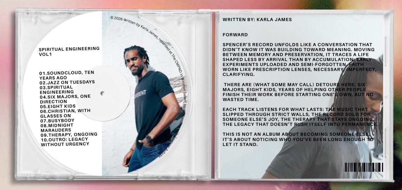 Back then, for Spencer, making music wasn’t about audiences. It wasn’t about release schedules or streaming platforms. It was about learning how to sit with yourself long enough to finish a thought. A line of prose. Learning how to layer, how a bass line could hold a feeling… steady, while something else moved on top of it. The irony is that those early tracks were some of the only things he made purely for himself. Those tracks, beats were just enough to prove the idea could exist outside of his body. Everything since has been relational. Shared. Offered.